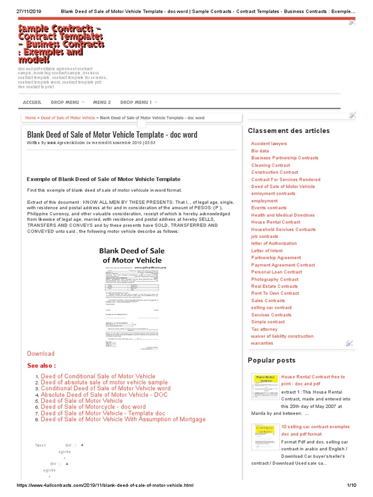 Blank Deed Of Sale Of Motor Vehicle Template Doc Format Deed Business Law
