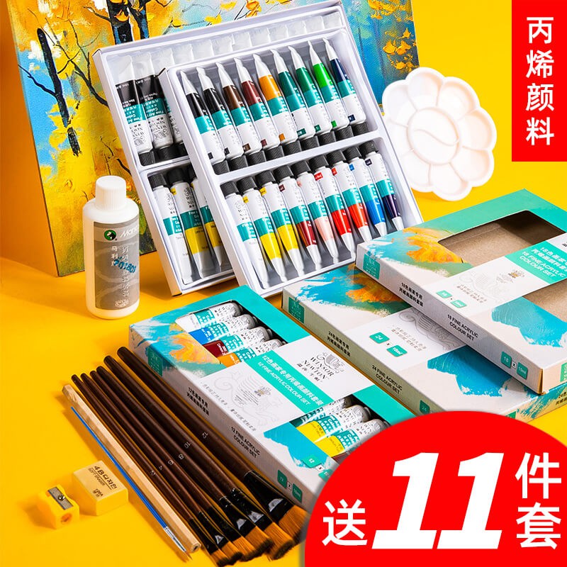 USD 9.57] Windsor Newton painter with 24-color acrylic set 12 color 18 color hand-painted wall painting special textile painting paint sunscreen waterproof not easy to drop color small boxed beginner graffiti painting